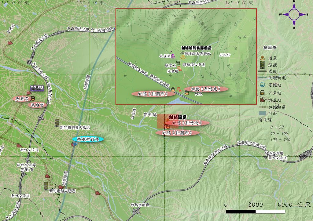 酒店式公寓、villa 3、佛道、溫室咖啡、香草植物園、觀景台(鳳山斜陽)、等12個秘境。新埔多年深耕規劃、自然生態整治有成,已被新竹縣政府評選為最大自然工法示範園區,也是新竹縣最佳智能生態園區。