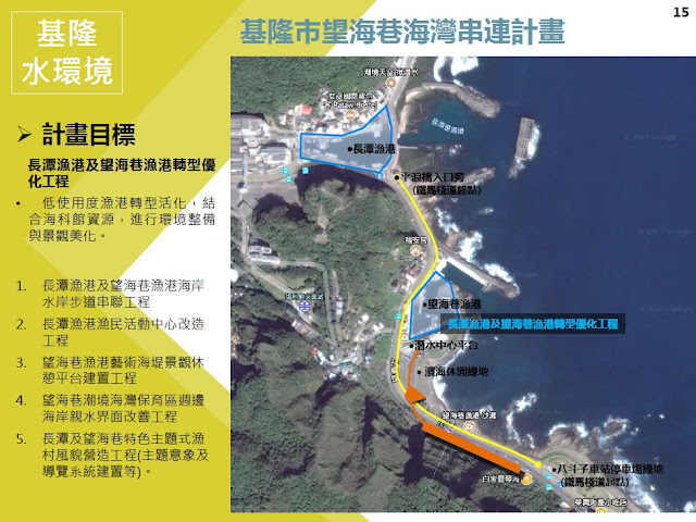 「基隆望海巷海灣串聯計畫」望海巷跨橋工程即將完工!本案由基隆市政府產發處主辦,一口規劃設計顧問公司設計及林昶濬建築師監造,工程則由虹泰營造有限公司興建,工程經費約4600萬元。近日基市府副市長林永發、產發處長黃駿逸、觀銷處長曾姿雯、海科館館長陳素芬及中正區在地議員張顥瀚等都隨同林右昌市長前往工地現場關心工程進度。一口規劃設計團隊主持人宋鎮邁開場簡報時表示,本計畫主要係以縫合東北角沿線及海科館間的自行車及人行步道系統,目的在創造更加友善的人本環境。